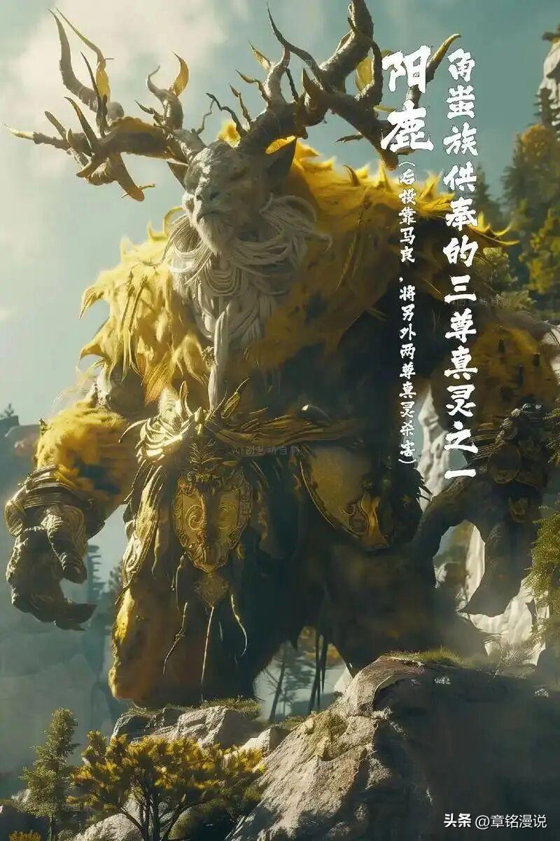 14、陽鹿:鹿首熊身,和角蚩族借用玄天之寶之力定下了上古契約,爲角蚩族供奉的上古真靈,後歸降於馬良。