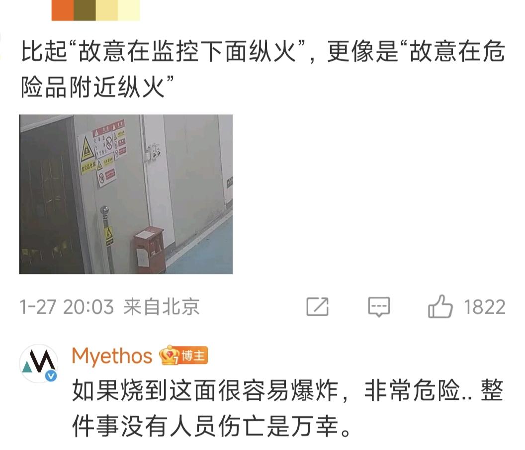 在官方公佈的視頻畫面中,可以明顯看到整個縱火的全過程,好在火勢控制及時,並沒有釀成太大的損失。