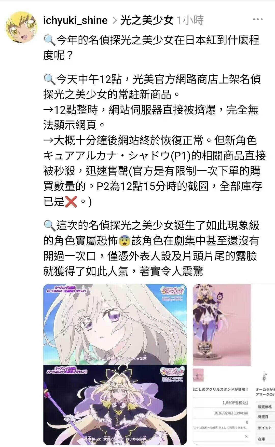 在不久前,日本光之美少女官方網站上架了森亞露露卡常駐周邊商品,官方前腳剛上架,後腳網站因同時登陸湧進人數太多,直接給幹癱瘓了。
