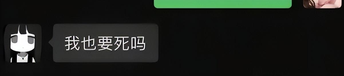 本身對話不是重點,但另一位女生配上一張黑白少女頭像,頭像中的女孩留着齊劉海長髮,在純黑背景下正視前方,表情無精打采,眼睛空洞無神,整體透露出一種“活人微死”的壓抑感。