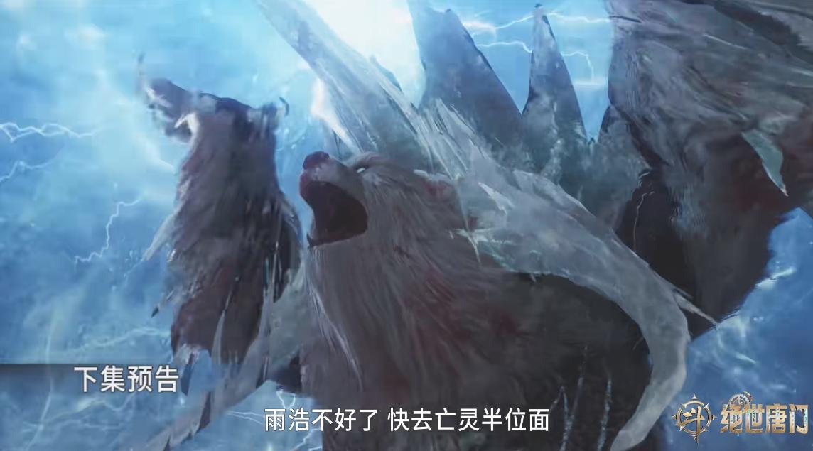 從先行預告中能夠看到,雷劫結束,雖然霍雨浩活下來了,但是冰熊王小白受傷嚴重,隨時都會隕落,在小白瀕死之際,雪帝出現了,讓霍雨浩別再耽誤了,通過伊萊克斯的傳靈祕法,幫助小白轉換成魂靈,讓小白跟自己與冰帝一樣,以另外一個方式存活。