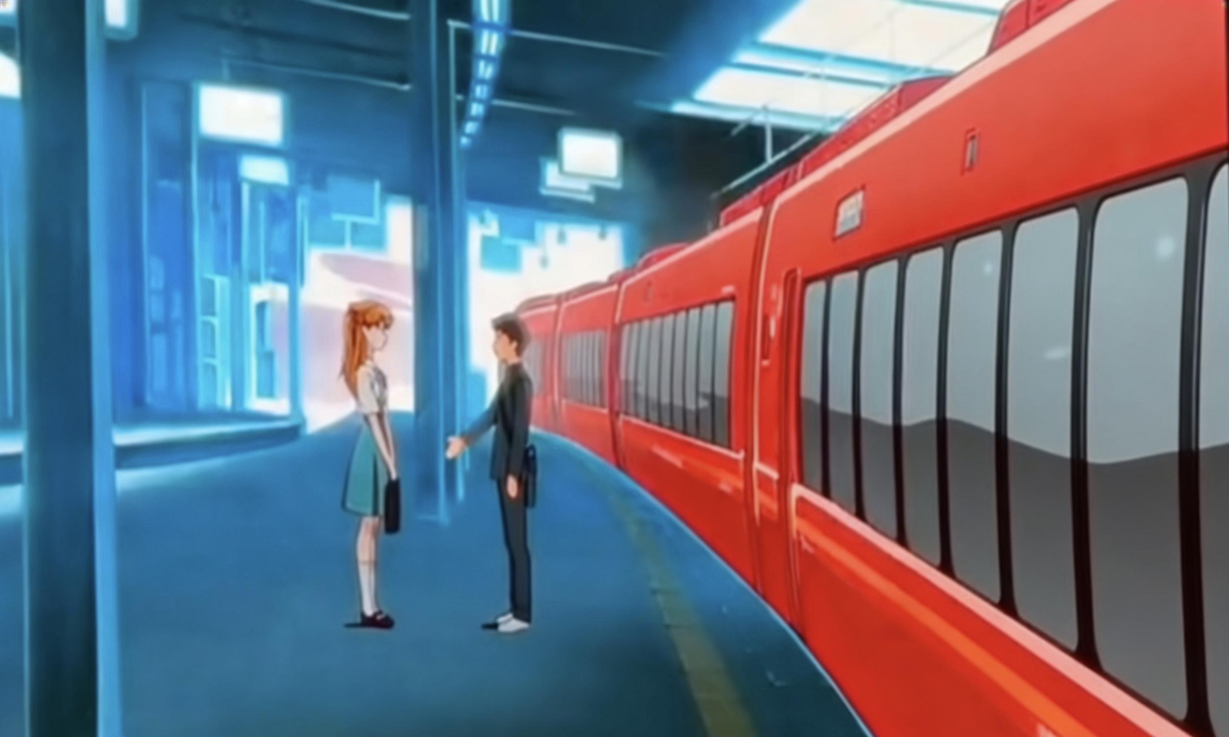 但觀衆的視線,依舊停留在站臺另一邊那個孤單的身影上,也就是明日香。作爲《EVA》作品早期的超人氣角色,明日香這個角色,陪伴很多人度過那個懵懂的時代。
