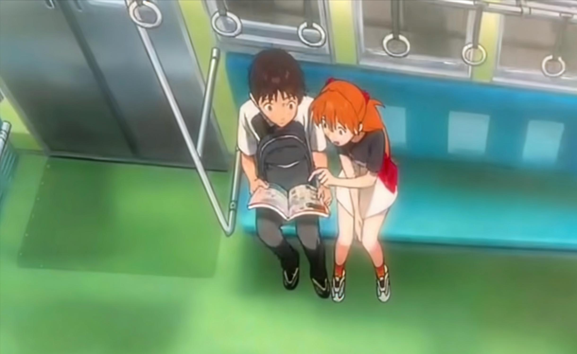 第四次,明日香入夢,總算有點觀衆們想看的內容了,在這個世界,明日香和真嗣兩人乘坐電車,來到第三東京市旅遊。