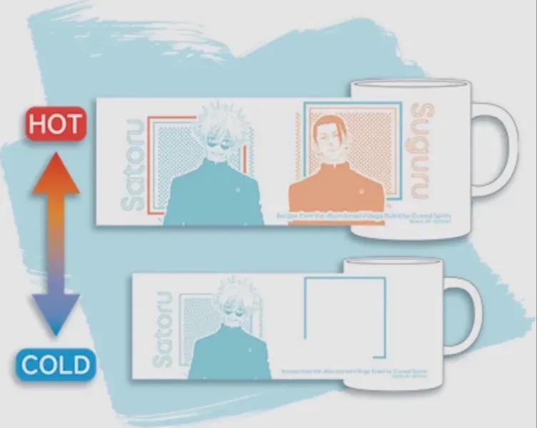 同樣也有對應的熱感應杯子,當杯子倒滿熱水的時候,可以看到五條悟和夏油傑兩人,而隨着杯子內的水溫度下降,夏油傑會逐漸消失,又是一個涼透了的設計