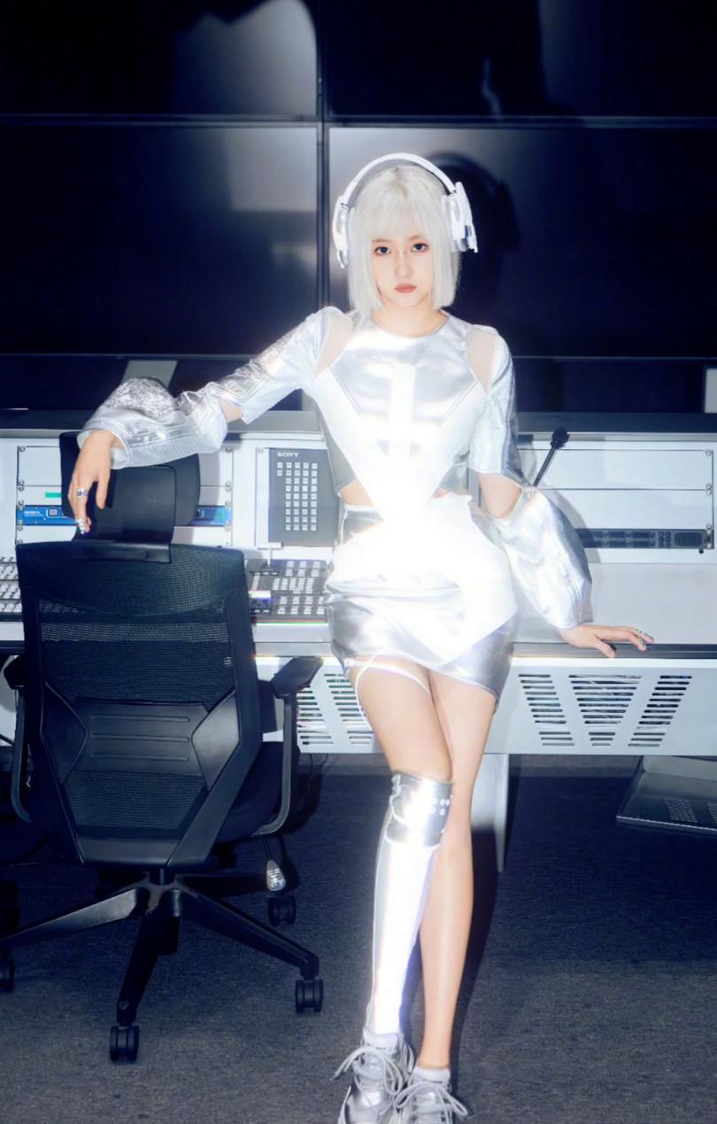 爲了增加角色的未來感,官方還特意增加了銀色的髮飾、鼻飾和脣釘,大大提升了整個人的未來感,即使在一衆明星的機械姬造型中,依舊十分出彩