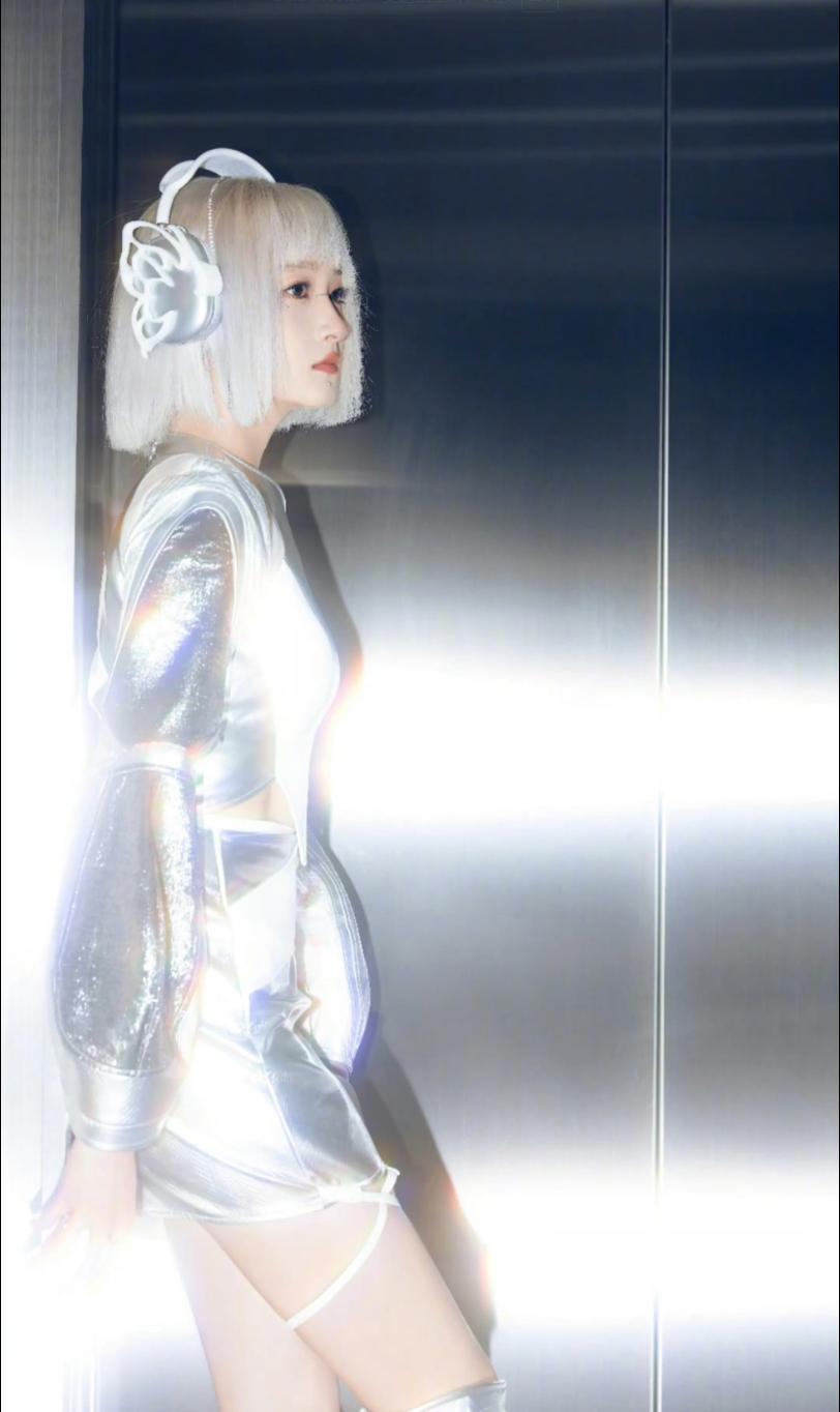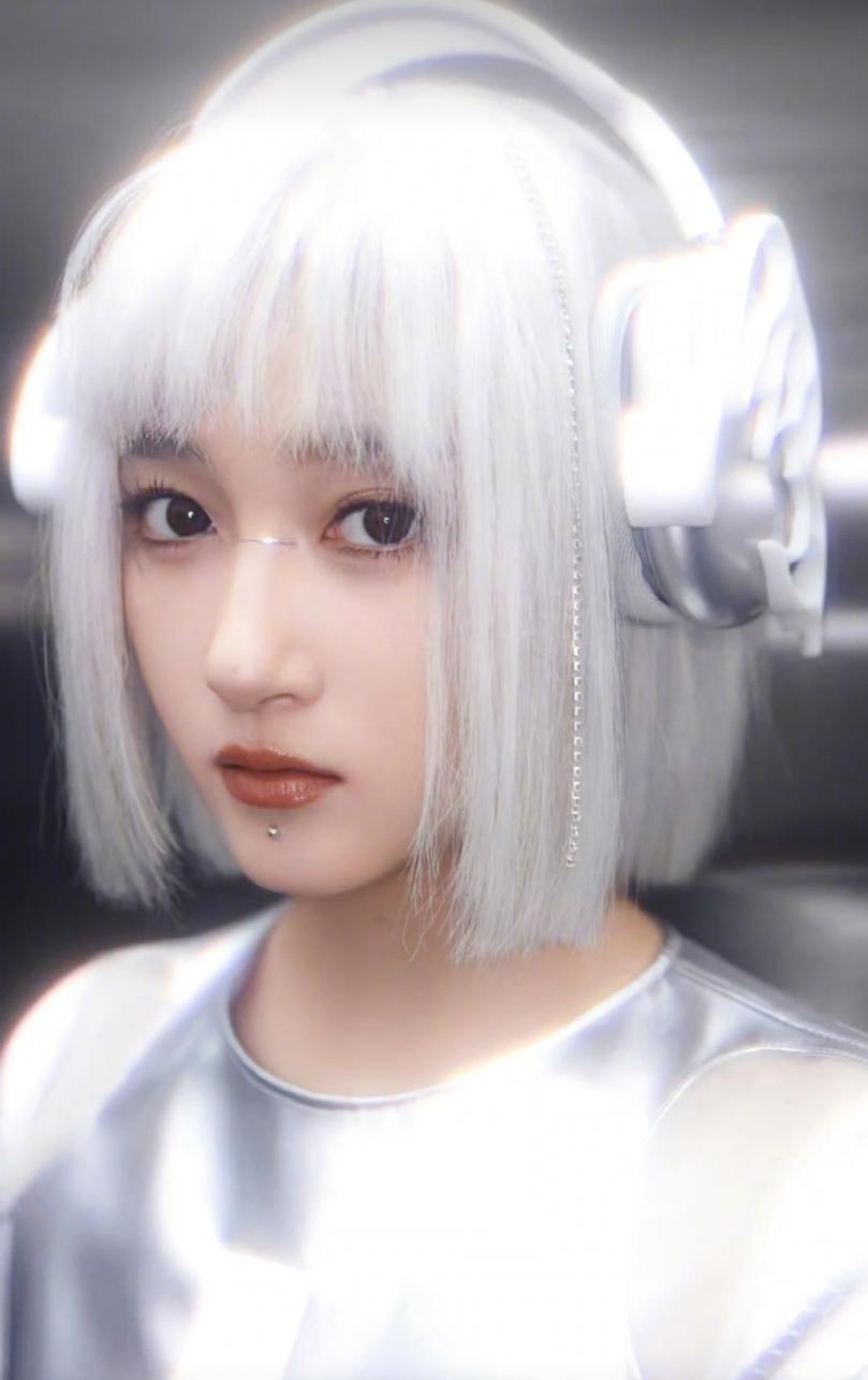 關曉彤的機械姬造型源於綜藝《王牌對王牌》,銀色的服裝和白色的頭髮科技感滿滿