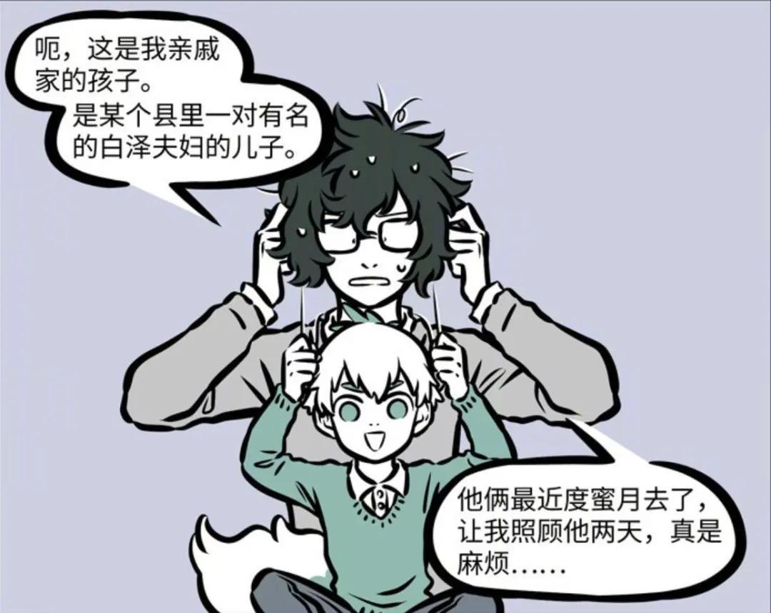 從白澤口中可以知曉,這位突然出現的小男孩確實認識白澤,是自家親戚的小孩,因爲他們近段時間出去度蜜月了,沒辦法照顧小孩,因此便將小孩臨時託付給白澤