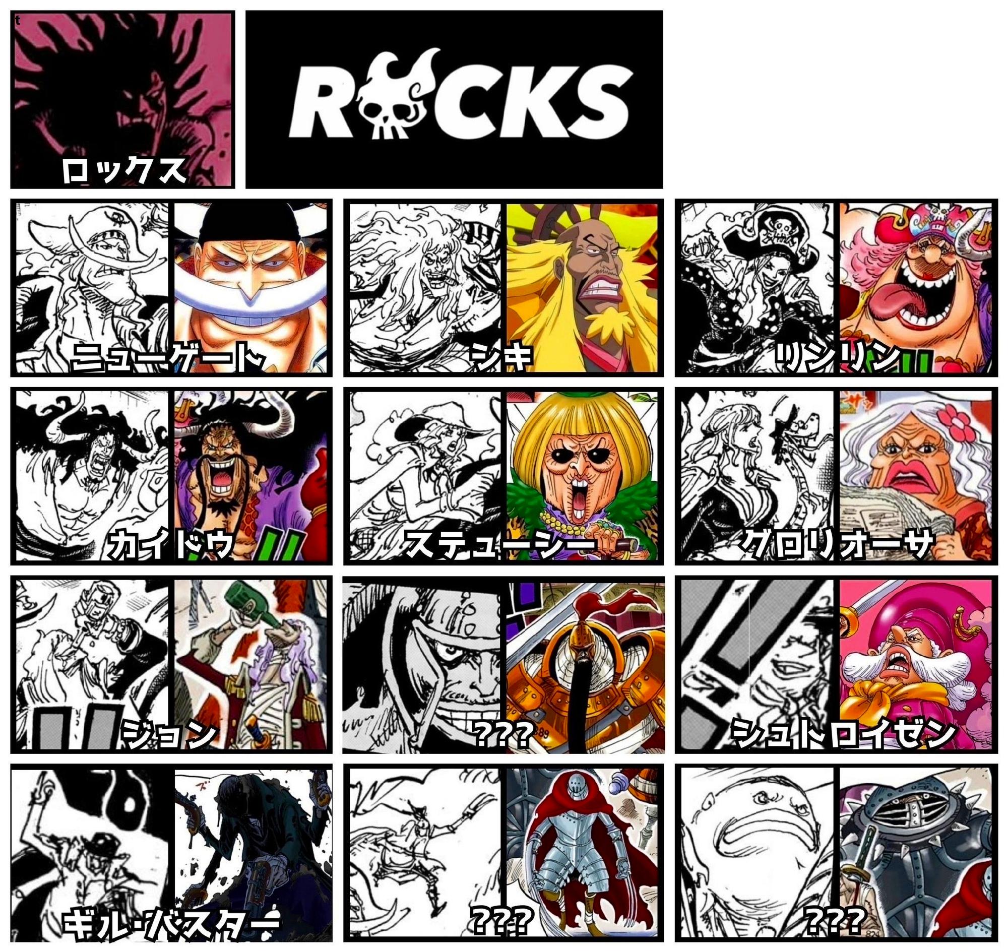 如洛克斯海賊團的約翰船長、甘孜、基爾·巴斯達三人的能力分別是超人系磁磁果實、炸彈果實、幽靈果實。尾田表示是這樣的,後面這三顆惡魔果實分別被基德、mr5、佩羅娜所喫!