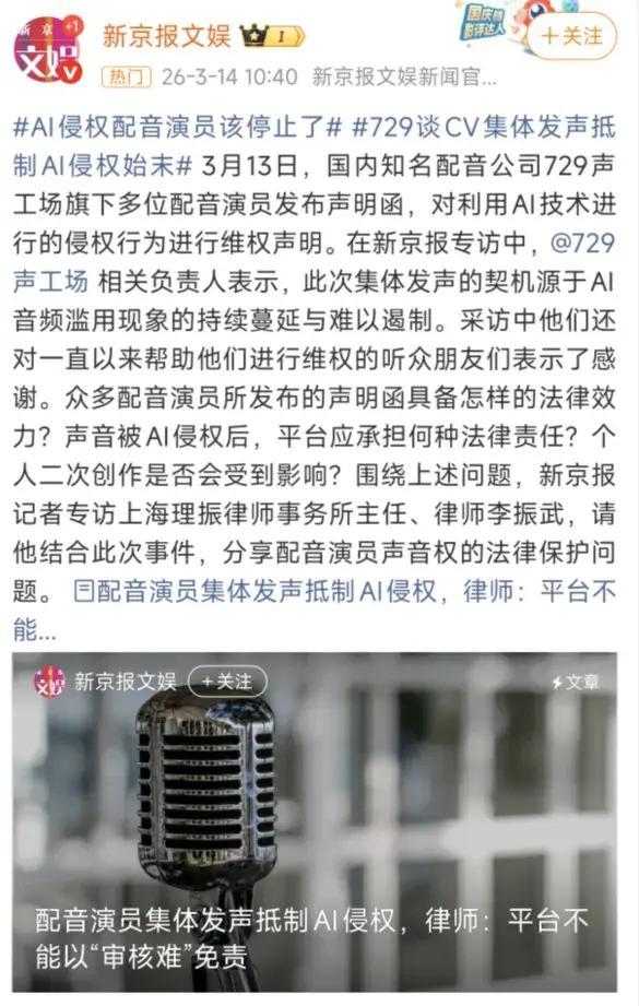 2026年3月,一場由配音演員集體發起的“聲音保衛戰”,正以燎原之勢席捲整個內容創作圈。