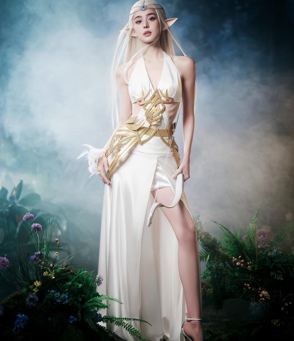 娜扎cos精靈女王,纖腰美背,大長腿吸睛,但這肋骨也太明顯了