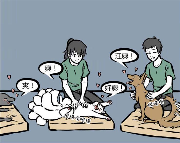 左右兩邊的小狗同樣十分享受,可以看出他們對於毛毛會所的業務十分滿意