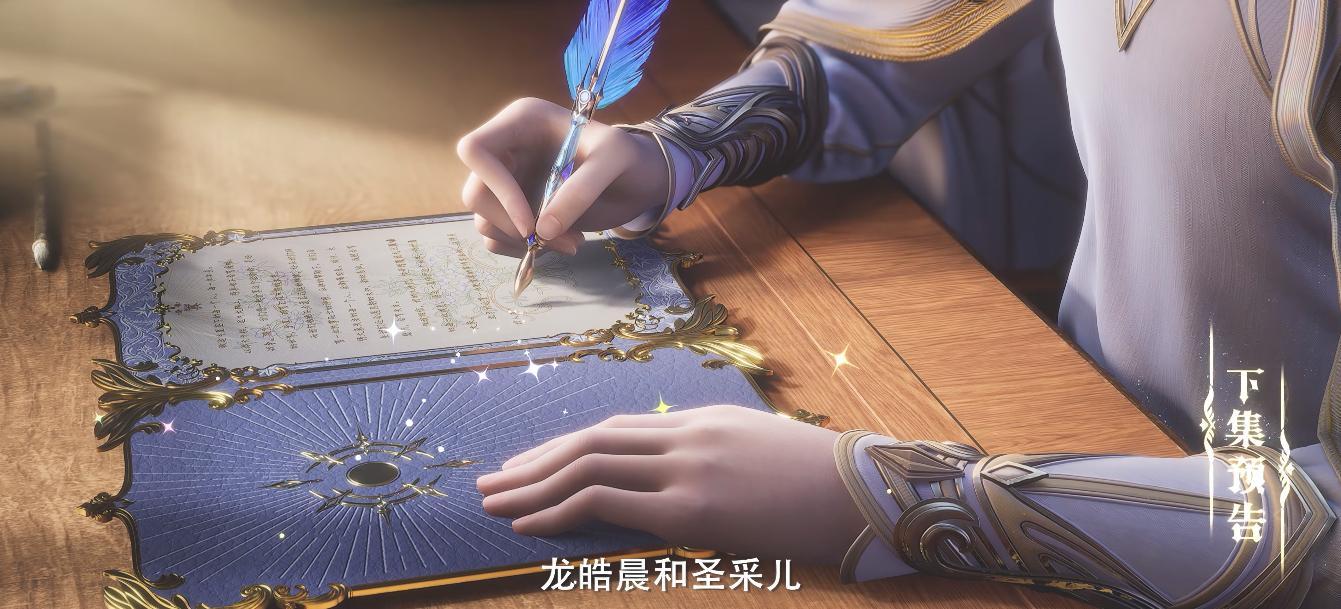 只見龍皓晨正在寫自己的婚禮請柬,準備邀請聖魔大陸所有的人類,都來到聖城觀禮,來親眼目睹他們倆的成親。值得一提的是,聖採兒也將有自己的新娘服。雖然預告沒有曝光全身照,但是她的側顏美翻,而且是蓬蓬裙式的婚服。而龍皓晨的新郎裝也是非常帥氣,一襲紫藍色的歐式禮服,戴着白手套,腰間佩戴着金黃色的水晶,氣質也是很出衆。