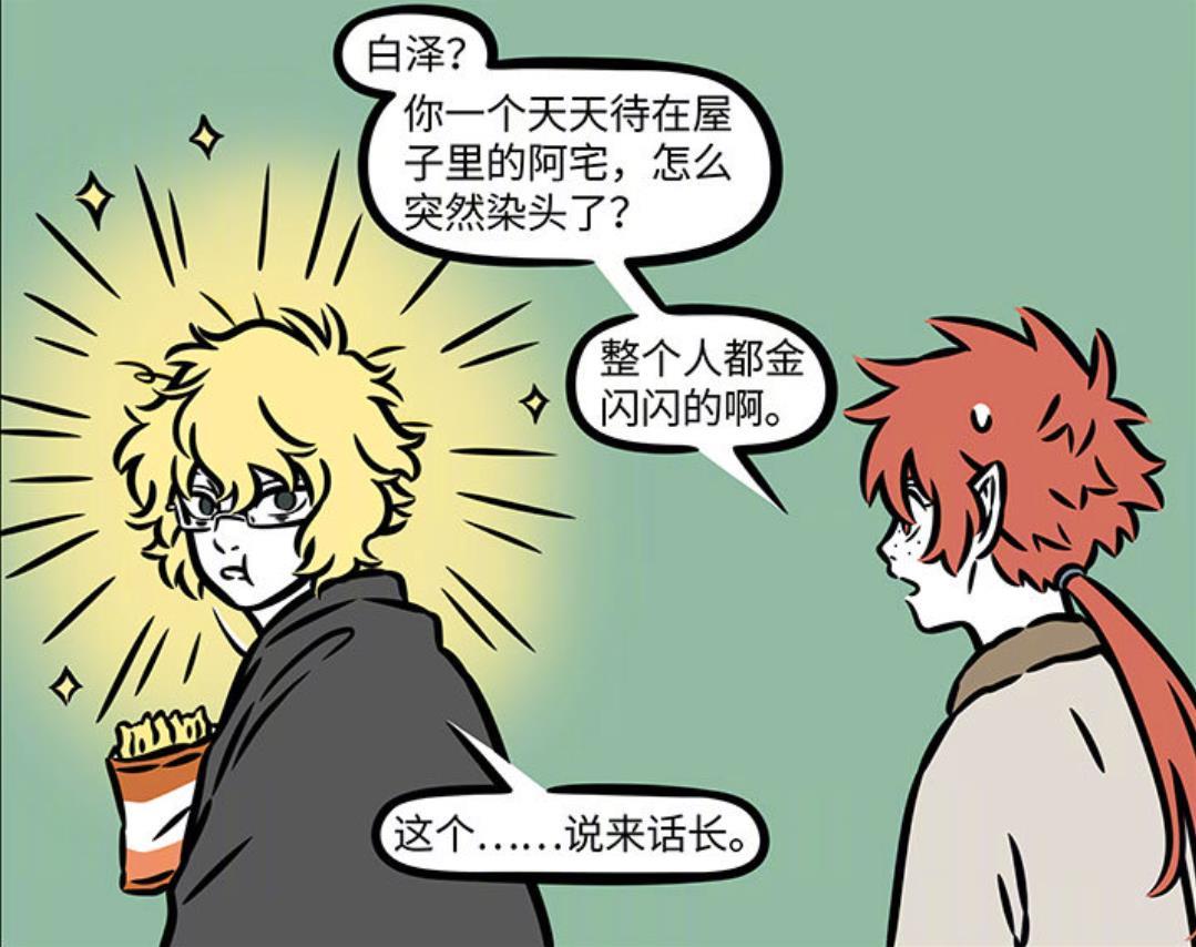 對於白澤新形象,饒是紅孩兒看到也嚇了一跳,忍不住感慨白澤這個阿宅怎麼想起來染成金色頭髮,而且他整個人看起來金光閃閃的樣子