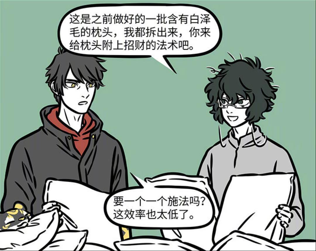 很快白澤就找到之前做好的一大批白澤枕頭,白澤表示自己可以把這些枕頭全都炒出來,然後讓財神附上招財的法術