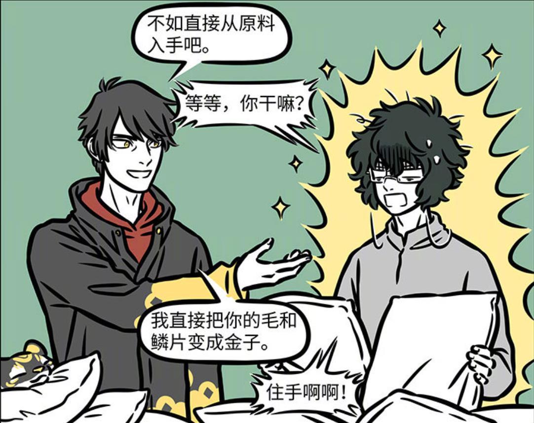 衆所周知,白澤枕的原材料正是白澤的毛髮,因此只見財神一個法術,將白澤的的毛髮和鱗片全都變成金子,這樣白澤就可以直接用自己的毛髮製作聯名白澤枕,也算是一勞永逸