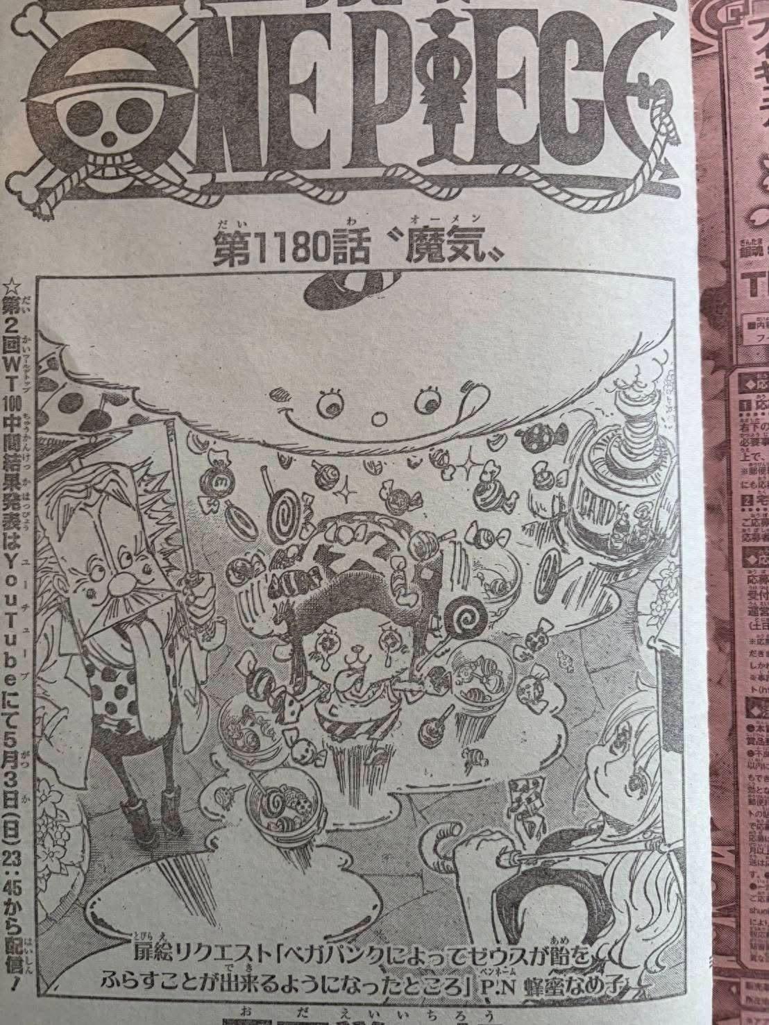 扉頁是應讀者要求,貝加龐克改造了宙斯給喬巴下糖果雨。