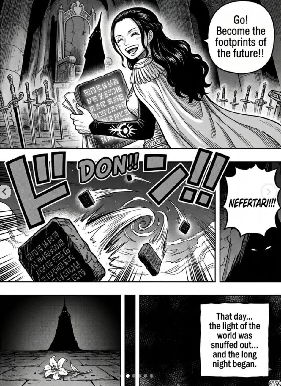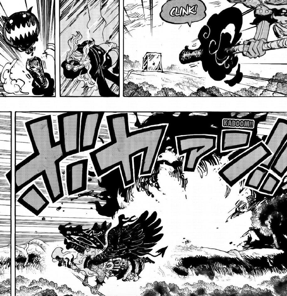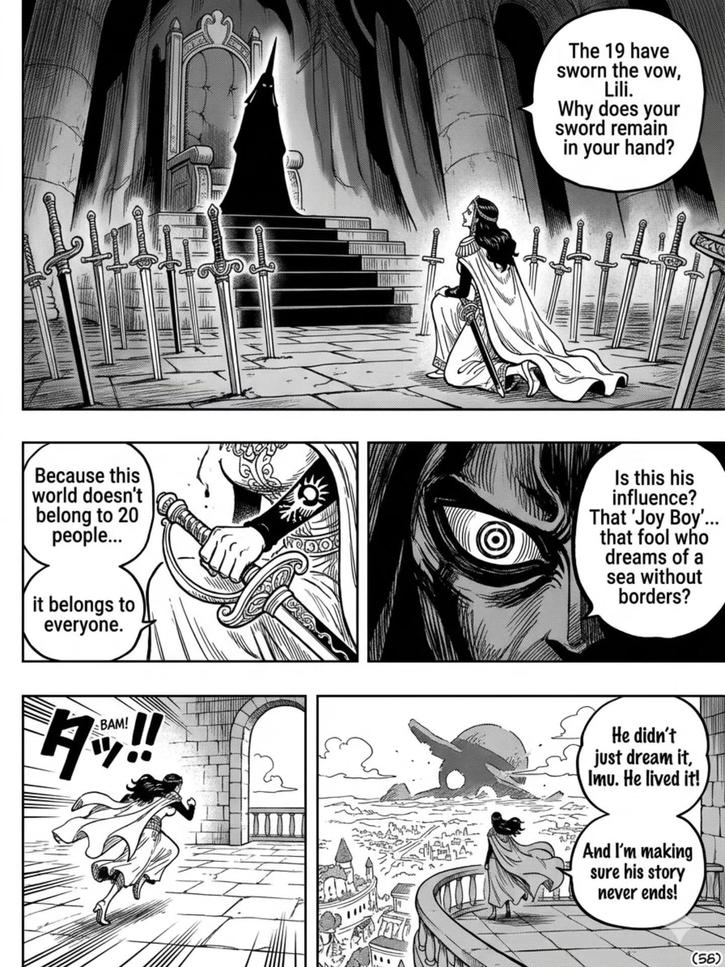 如今伊姆來到巨人之國,開始了壓倒性一戰!輕鬆擊敗了王之雙翼索隆和山治,然後救了索瑪茲、麒麟戈姆,也順便對軍子的冰塊進行了轟炸,讓她解脫。