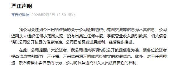 寒武紀發表聲明:公司近期從未組織任何小範圍交流