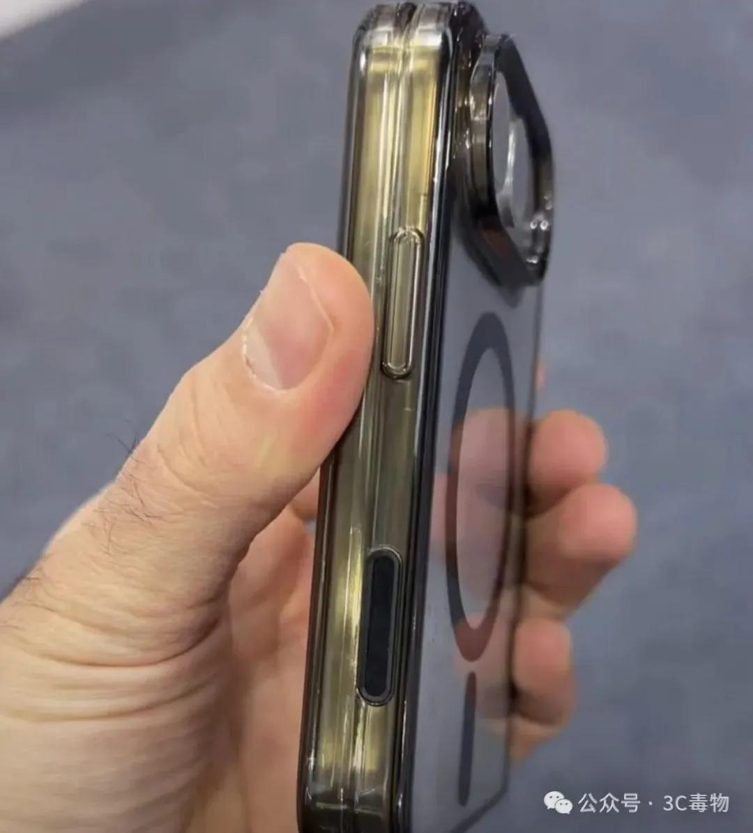 iPhone Fold的手機殼確實在機身側邊預留了電源鍵、拍照鍵,沒有音量鍵。