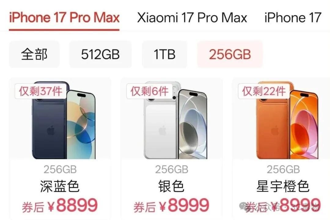 入門版的256GB,iPhone17ProMax的售價爲8899元。