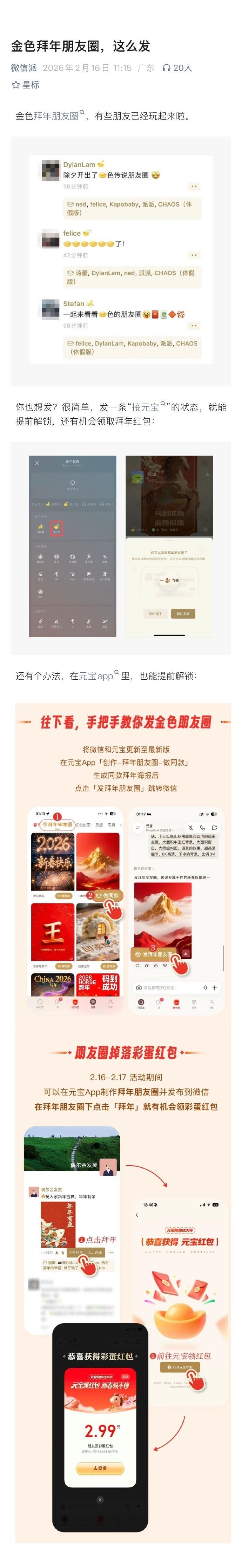 微信上線金色朋友圈拜年功能 元寶App助力鴻蒙也能玩