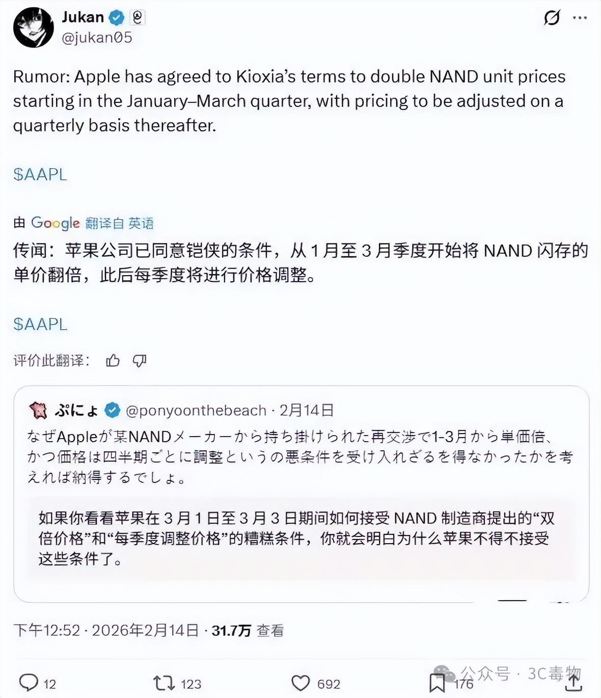 所以,如果鎧俠已經正式確認NAND閃存採購價格翻倍。