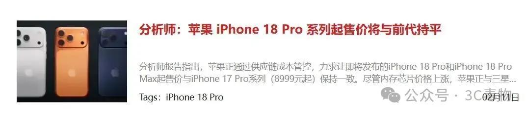不過,iPhone18ProMax的價格將會出現兩極分化的局面。