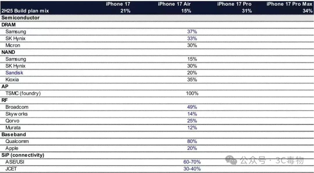 以iPhone Air爲例,就同時使用了五家供應商的NAND閃存。