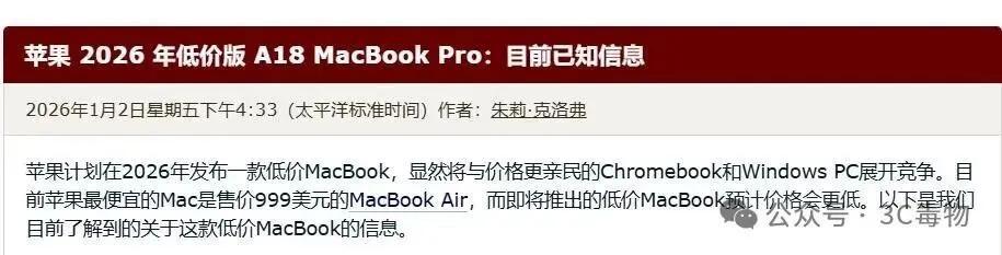 和iPhone17e同樣屬於性價比新機的,還有低價版MacBook。