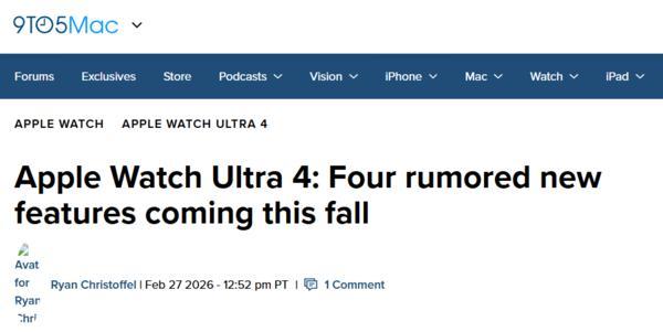 【CNMO科技消息】2月28日,據外媒報道,雖然蘋果將在下週舉辦的新品發佈會中沒有Apple Watch機型亮相,但預計在今年晚些時候,Apple Watch Ultra 4將正式發佈。基於多方供應鏈泄密及分析,Apple Watch Ultra 4可能具備以下四大核心升級特性。