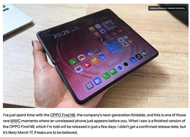 OPPO Find N6 驚豔亮相MWC 2026! 近乎無痕屏幕震驚海外媒體