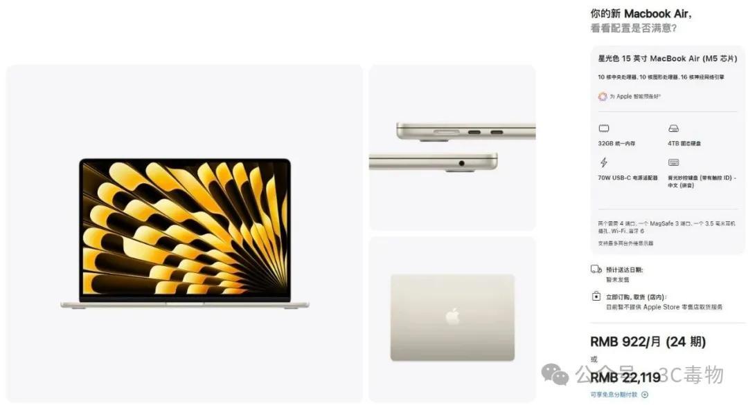 毒哥嘗試將MacBook Air的配置拉滿,得出的價格爲22119元。