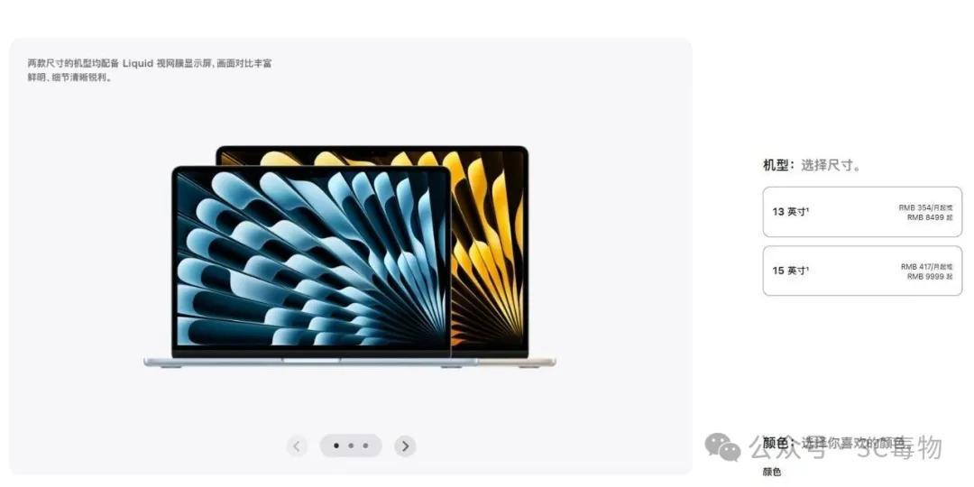MacBook Air的尺寸也是兩個,分別是13英寸、15英寸。
