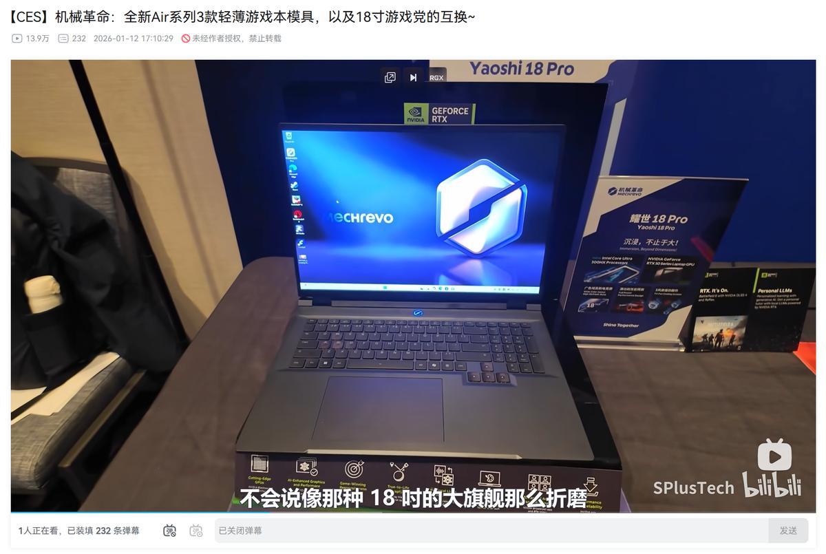 而在CES 2026展會現場,機械革命18英寸新品也確實成了不少人關注的焦點。 樣機前吸引了不少媒體和嘉賓駐足打量,也有數碼博主專門出了探展視頻,搶先給玩家們來了一波解讀。