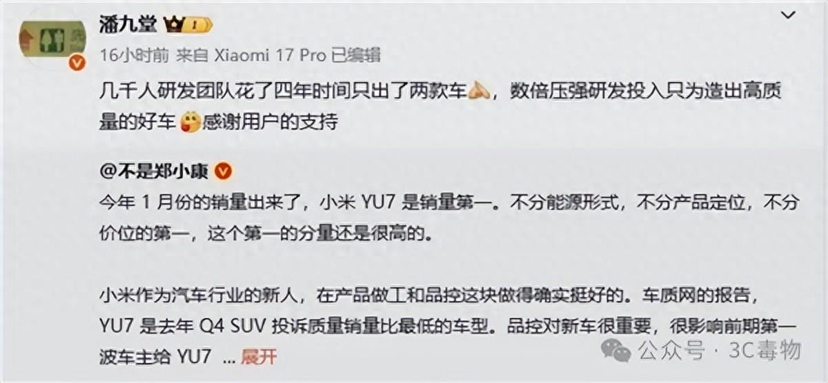 小米YU7能夠取得如此好的銷量成績,還是因爲小米團隊幾千人,耗費四年的時間只研發兩款車。