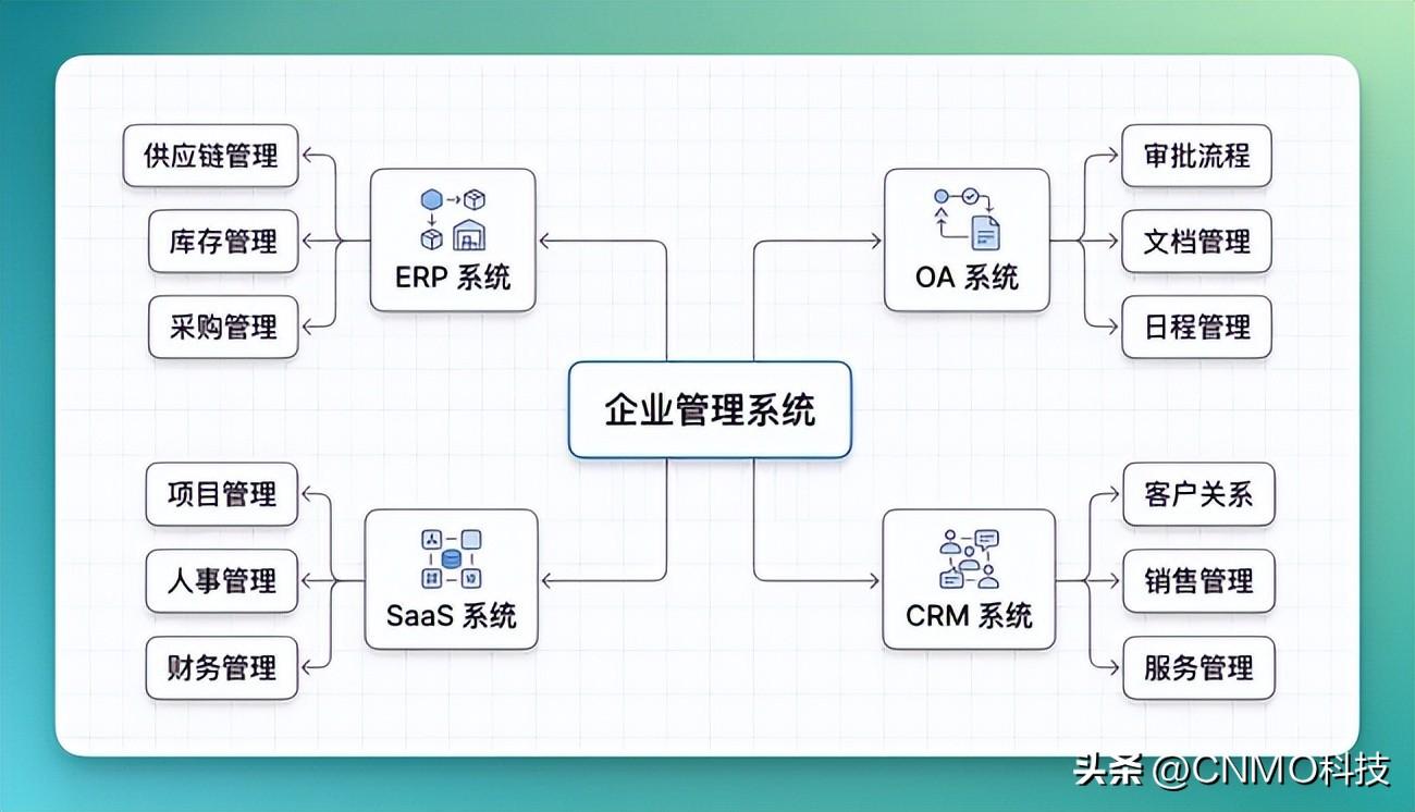 ERP 管供應鏈,OA 管審批流程,CRM 管客戶關係,各種 SaaS 管項目、管人事、管財務。買單的是企業,使用的是員工,整個設計邏輯圍繞的是同一個問題:「如何讓組織內的一羣人協作得更好、更有化學反應」。