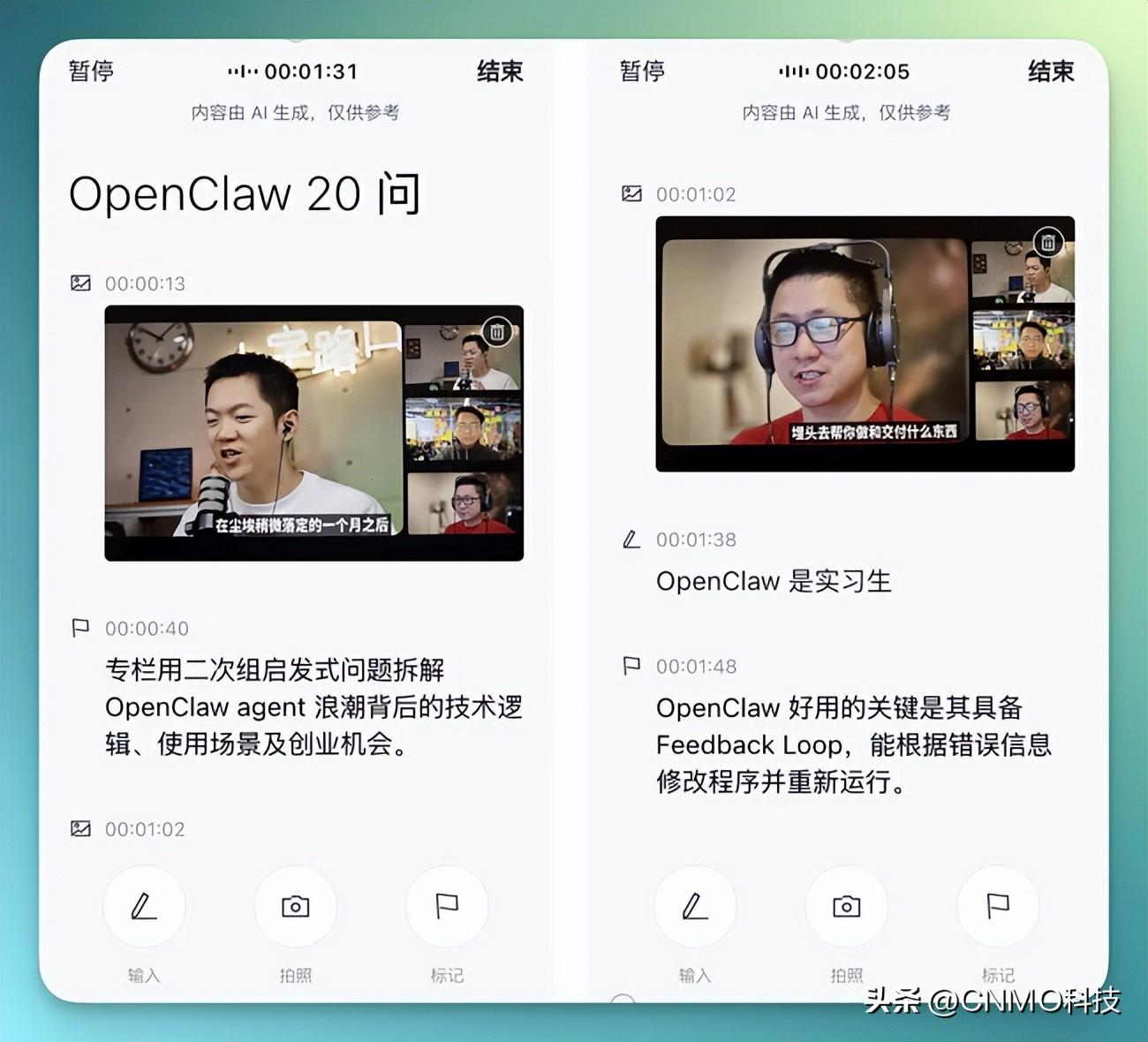 像我們就用 Plaud 重新回顧了下 Koji 最近的「OpenClaw 20 問」節目,圖片、文字、標記的內容都會被整合到裏面去: