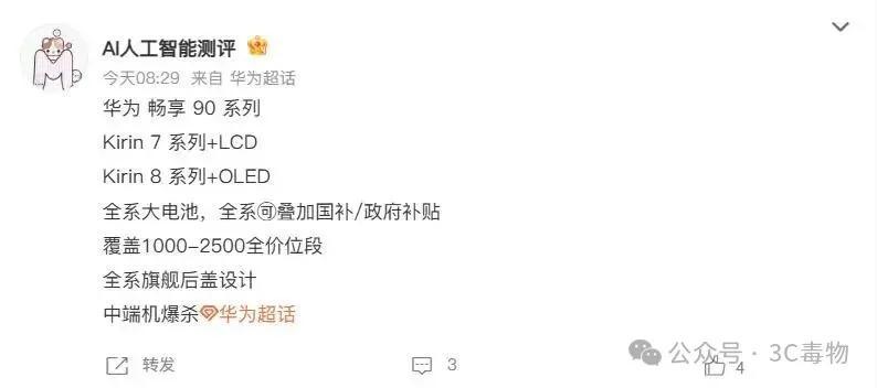 毒哥覺得,華爲暢享90系列在2500元價位應當會賣爆了。