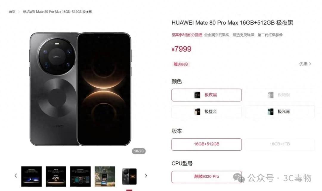 在華爲官方網站上,華爲Mate80ProMax已經現貨供應了。