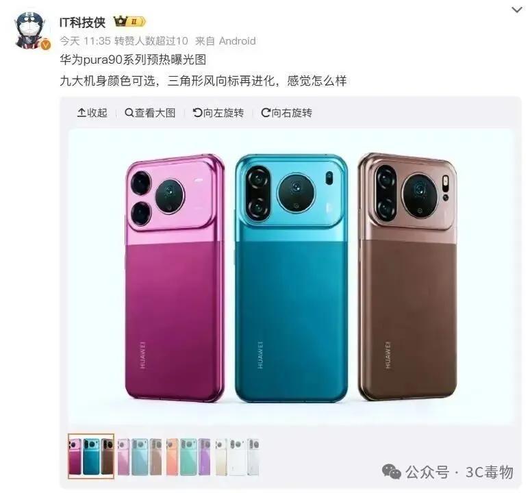 網絡上曝光了一組華爲Pura90系列的預熱圖,已經取消了三角形的相機模組。