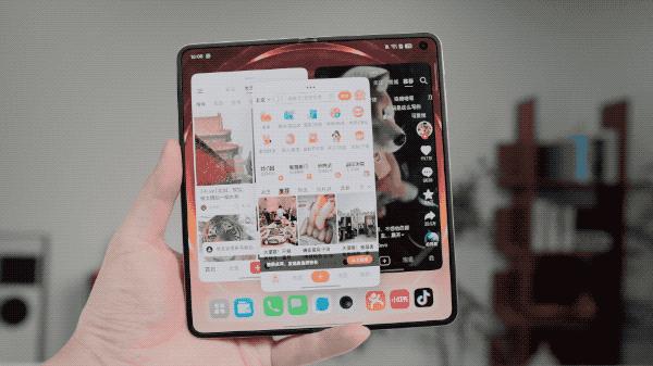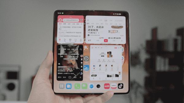 你可以理解爲,它將電腦一般的體驗,帶到了摺疊屏中。它的窗口位置和大小均可無極自由調節,一推一拉就能改變比例,雙擊小窗就能變全屏。爲了方便大家快速上手,只要記住“一、二、三、四”這句口訣:一是“一推一拉”,自由調節窗口比例大小;二是“雙擊”小窗,瞬間變回全屏;三是獨具特色的“三分全景虛擬屏”,支持三個應用左右或上下靈活堆疊顯示;四是“四指”抓放,瞬間整理或解綁浮窗佈局。這套組合拳下來,最多支持四個應用同屏開啓,多任務處理效率直接拉滿。