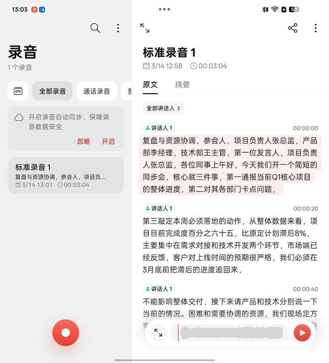 OPPO Find N6支持AI實景對話,外出遇到不知名的動植物、沒去過的景點,隨手一拍就能告訴你精準信息。AI錄音功能可以精準識別不同發言人的音色,事後還能快速地生成待辦事項和會議紀要。