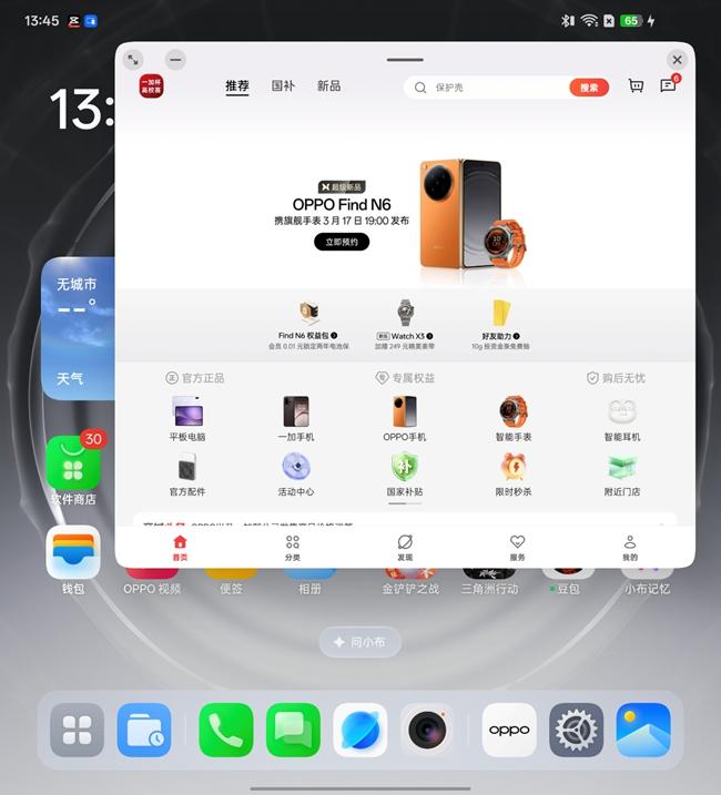 而大屏的價值,不止在於手寫筆,更在於如何同時處理多項任務。這次ColorOS 16帶來的全景自由窗,讓多任務體驗又往前邁了一步。按住窗口底角一拖,全屏變成懸浮小窗;再拖白色圓弧,窗口可隨意調大小;雙擊小窗之後可以切換成全屏。一邊看視頻一邊回消息,把視頻拖到角落,兩邊都不耽誤。需要查資料寫文檔時,全景虛擬屏能同時容納三個應用並列或堆疊,拖一拖小白條就能調整佔比。最多四個窗口同時開啓,動畫依然順滑。手勢也很順手:四指張開,浮窗瞬間排成規整分屏;四指捏合,又能解綁回自由浮窗。窗口切換變得像用手勢比劃一樣自然。