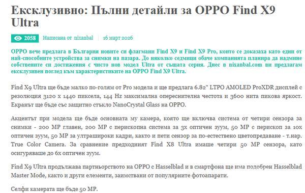 【CNMO科技消息】3月20日,據外媒報道,OPPO Find X9 Ultra在相機、屏幕、電池等方面均有顯著升級,預計將於4月亮相,並有望登陸保加利亞等海外市場。