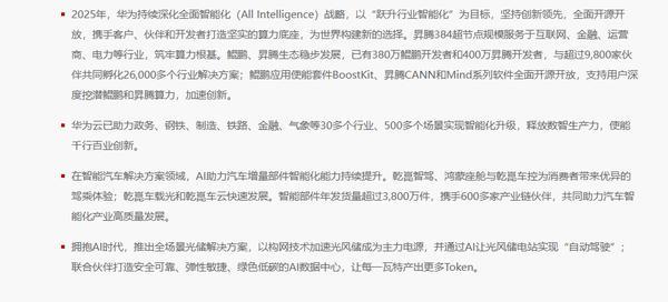 華爲在智能汽車領域堅持開放合作、共贏發展的理念。截至2025年底,華爲已攜手600多家產業鏈夥伴,共同助力汽車智能化產業高質量發展。通過整合上下游資源,華爲不僅提供智能增量部件,更致力於構建開放共贏的產業生態,推動整個汽車行業向智能化方向加速演進。