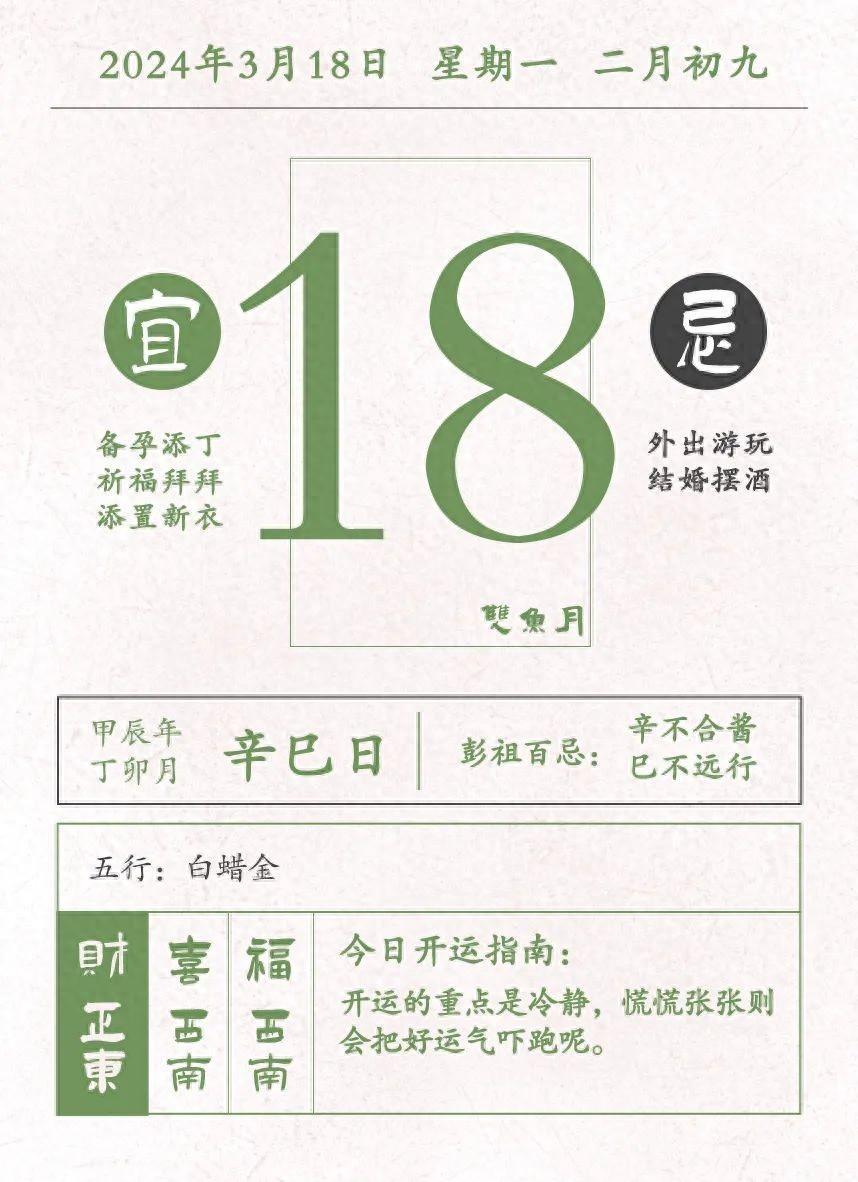 今天要防止提前消費,最好讓自己的支出更有計劃性。今天不適合購置大額商品,若打算籤買房買車的合同,建議再考慮兩天。今天適合規劃自己的長期支出,比如未來的旅行、教育支出。