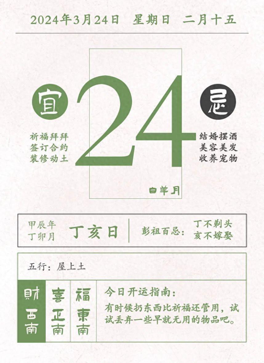 今天的你對舞蹈特別感興趣。你可能會想學一兩支舞,無論是爵士還是古典,都能釋放激情與活力,保持身心健康。不少人也會在今天關注男團/女團的歌舞,或去看一場歌舞音樂劇。