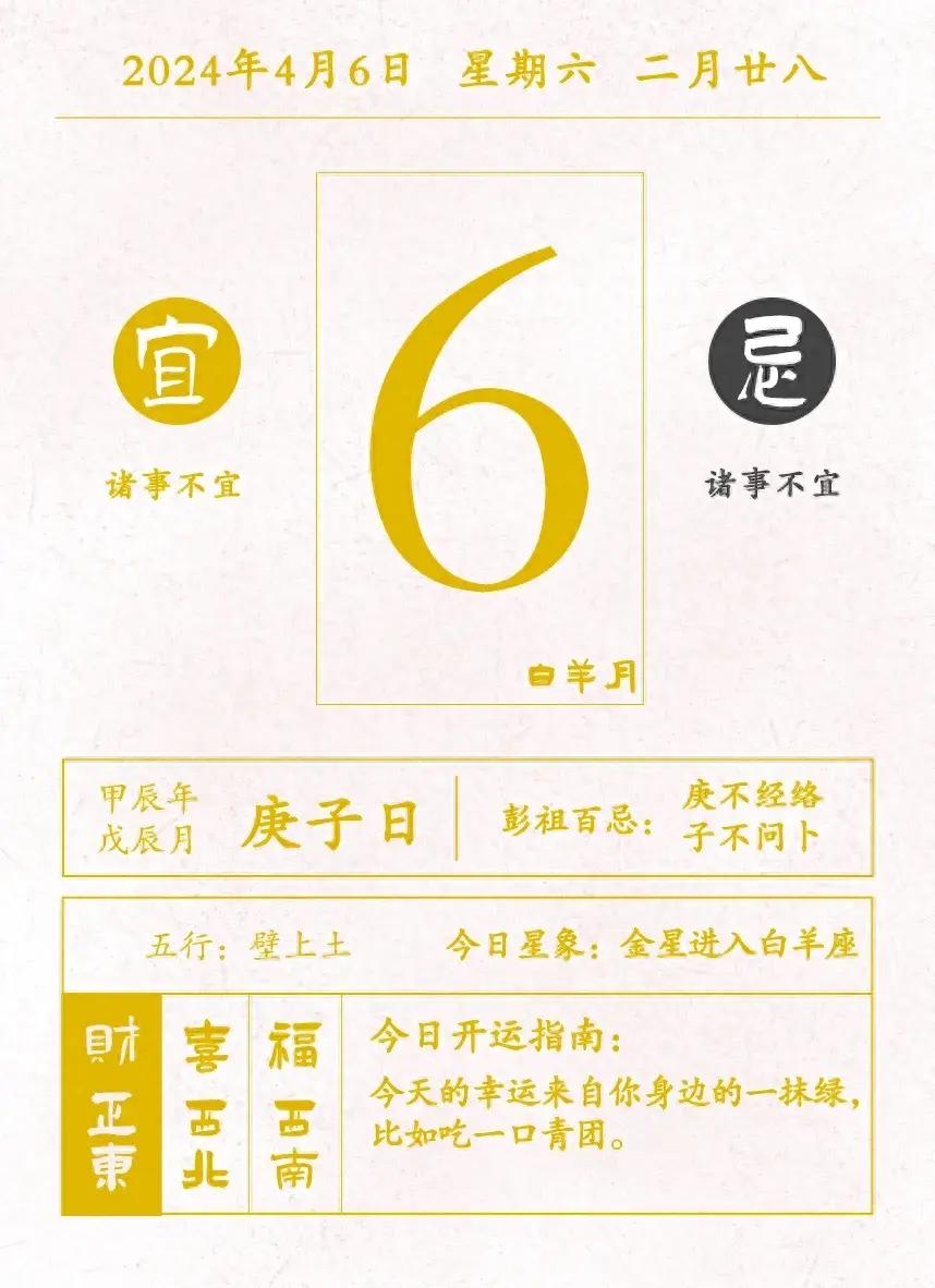 人際關係的甦醒與復活是今日的主題。不妨主動去爲一陣子沒有見面的夥伴們籌劃一場小聚會,或是主動去找鬧彆扭的ta和解吧。另外,華麗氣派的場所是今天的幸運地,出門的話也可以打扮得漂亮一點。