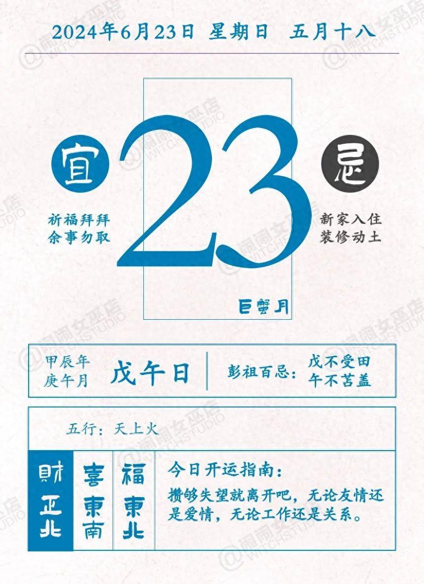 今天婚戀危機多,要多花時間在感情的經營上。單身的人會覺得脫單困難,很難遇見正緣,爛桃花又不能將就。建議單身者着重提升自身魅力,打扮自己或充實內在。有伴侶的人容易與身邊人產生矛盾,要多花心思去處理。