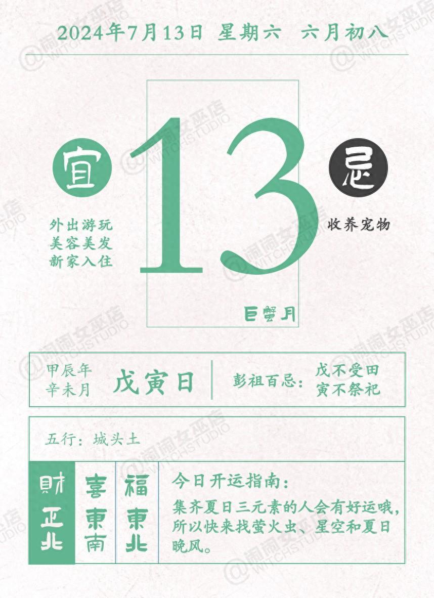 今天的你要爲自己的住所添置物品。你會發現家裏缺了不少生活必備品,必須要儘快採購。不少人也會在今天購買衣服和護膚品,或是與人拼單買一些食品或零食。同時,今天要注意家電的使用情況,若有損壞請及時維修。